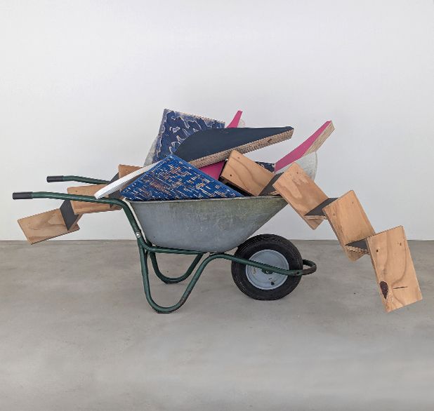 EINZELTEILE IN ORDNUNG, 2018, Holz, Farbe, ca. 190 x 280 x 280 cm